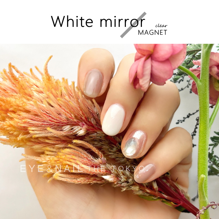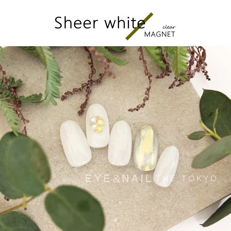 シアーベージュとホワイトのワンカラーにぷっくりマグネットネイル★