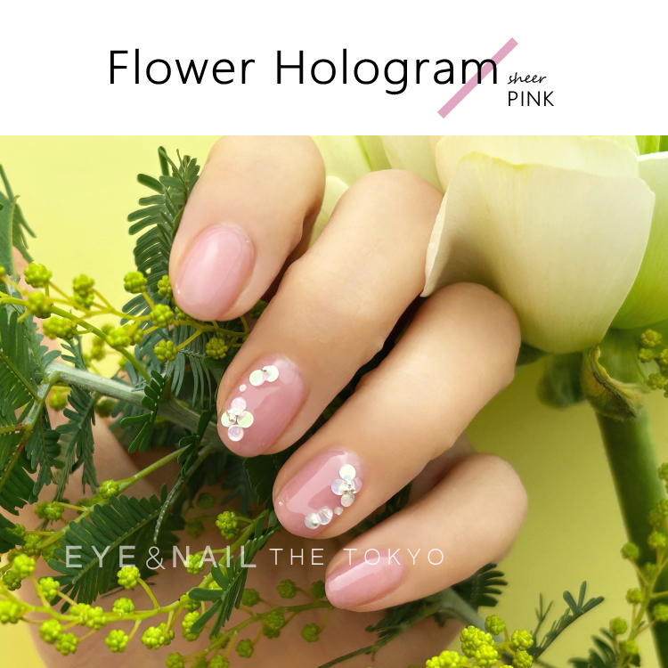 シアーピンクにオーロラホワイトホログラム小花デザイン☆